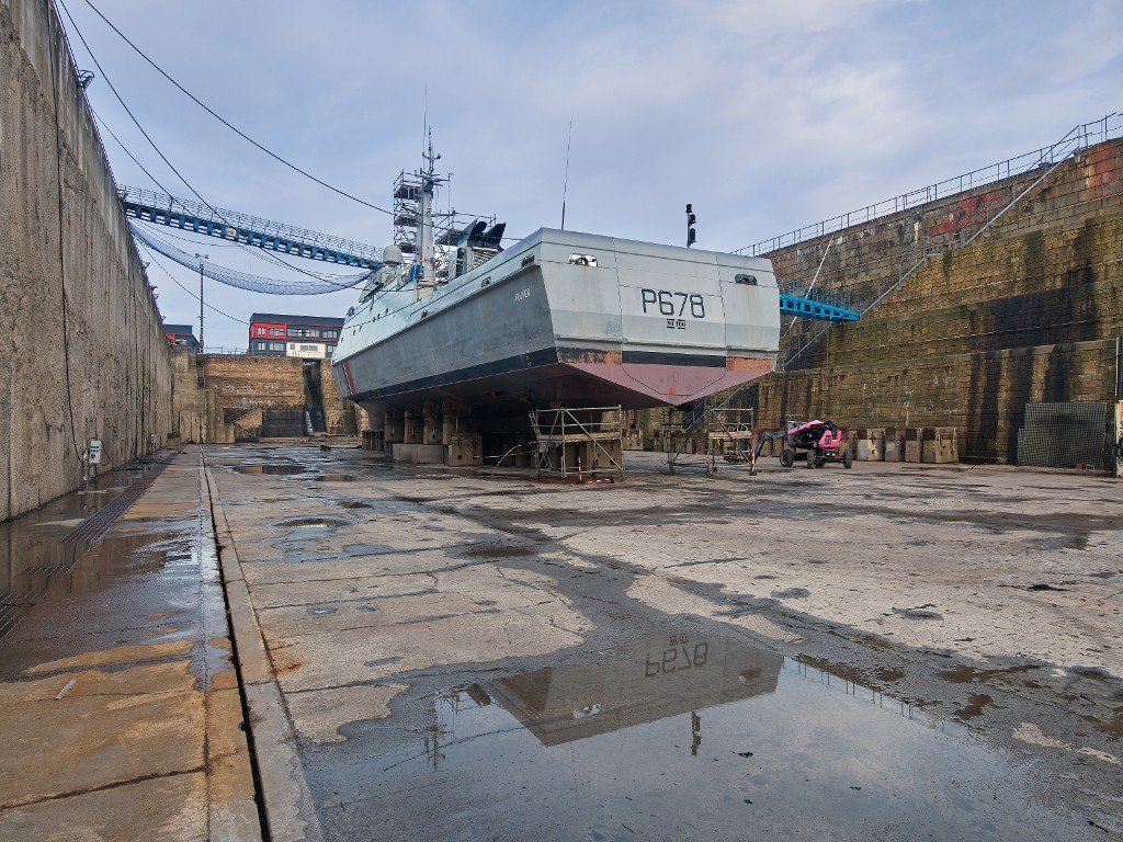 Le patrouilleur Le Pluvier en cale sèche (vue du bajoyer est)Immatriculation