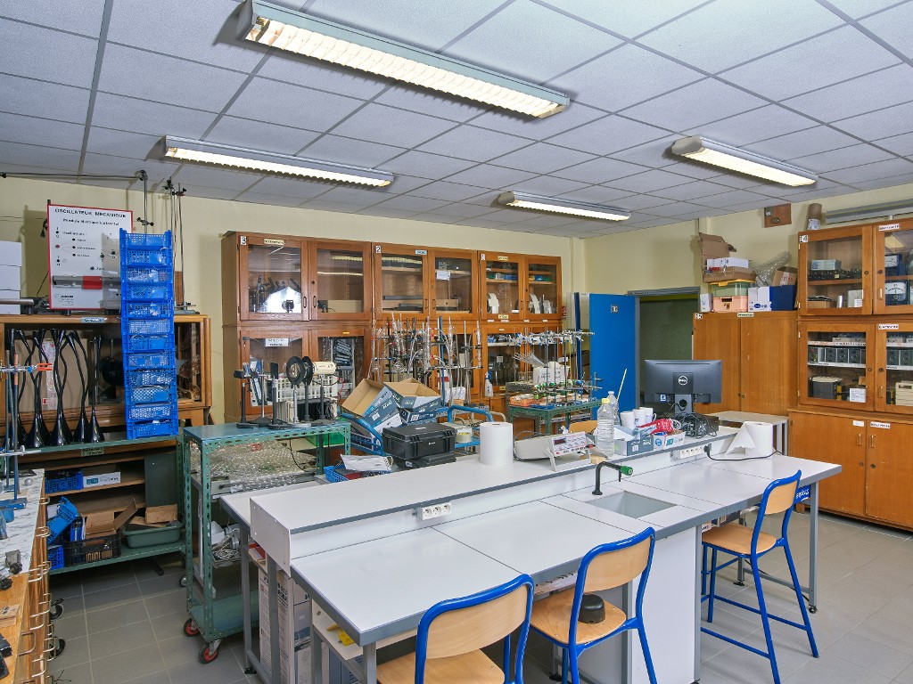 Vue d'ensemble partielle de la salle 315 : collections de physique.Immatriculation