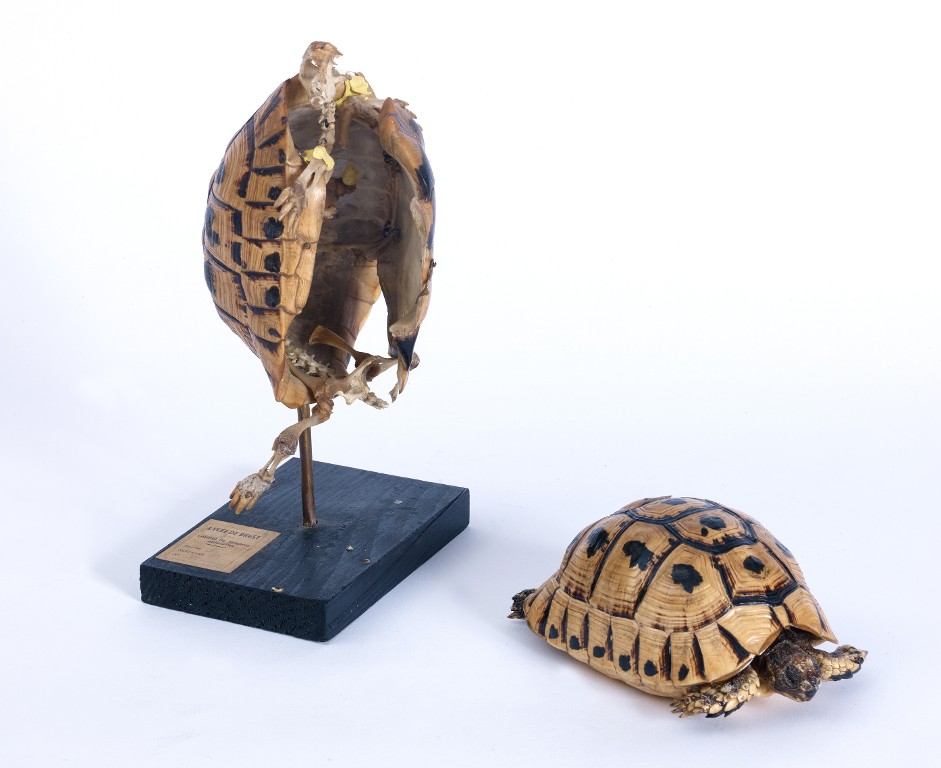 Squelettes de tortue dont une fixée sur socle achetée en 1946.Immatriculation