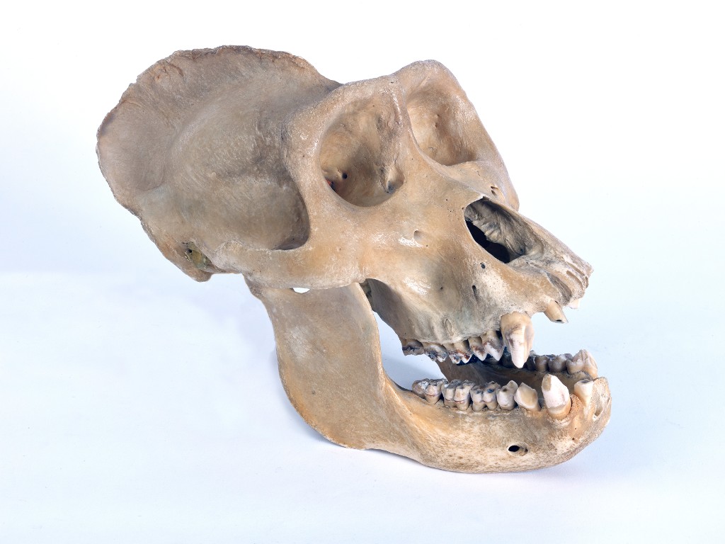 Crâne de gorille complet avec impressionnante crête sagittale au sommet provenant certainement dun don.Immatriculation