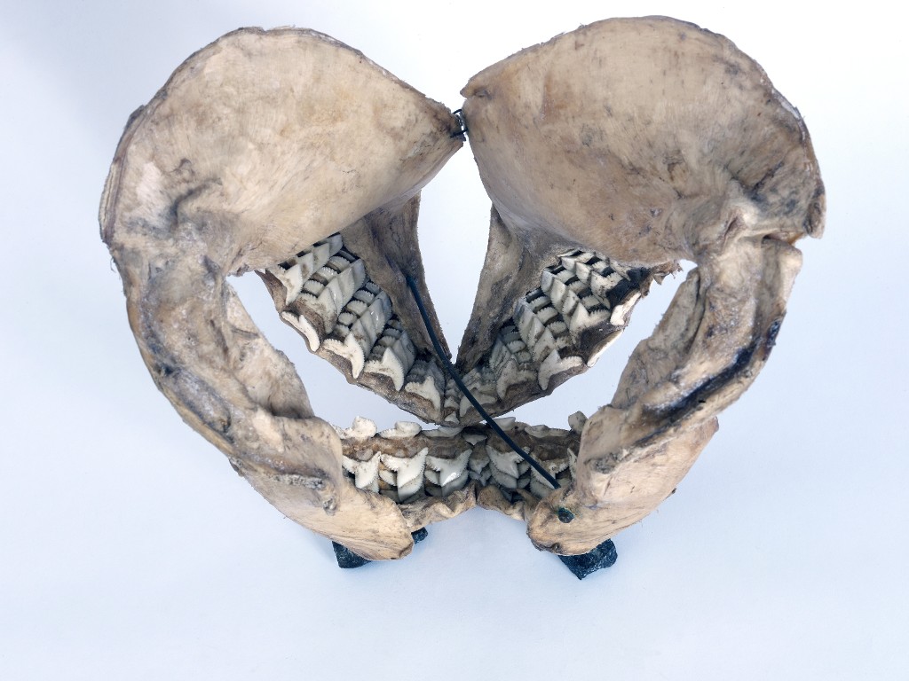 Mâchoire de requin avec dents en forme de crête de coq, appartenant certainement à un requin tigre provenant certainement dun don.Immatriculation