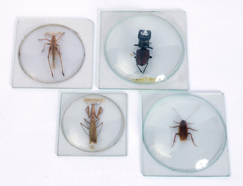 Collection dinsectes placés entre deux verres par la maison Auzoux et acquis en 1962.Immatriculation