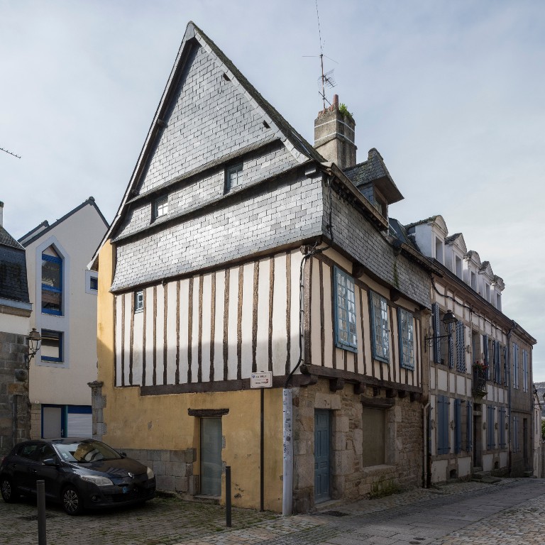 On distingue sur cette vue la simplicité de l'assemblage de l'angle en pan de bois ainsi que l'usage de bois de faible section et de moindre qualité esthétique.Immatriculation