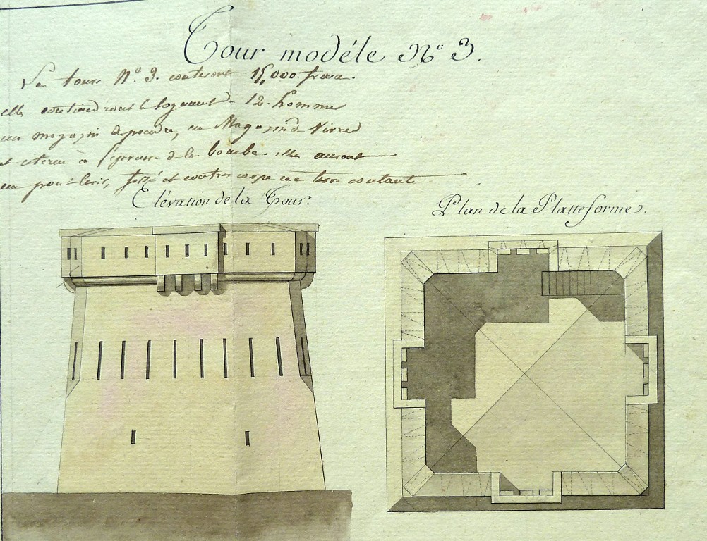 Plans, coupes et élévations des tours-modèles adoptées par sa majesté, 1811 : tour modèle n° 3 (pour 12 hommes)Immatriculation