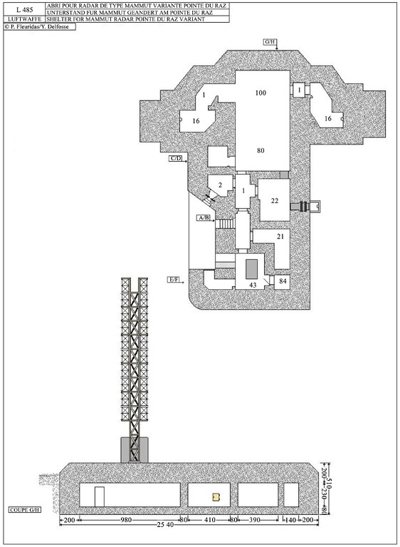 Plan et coupe du bunker de type L 485 pour radar Mammut (dessin : Patrick Fleuridas, Yves Delfosse)Immatriculation