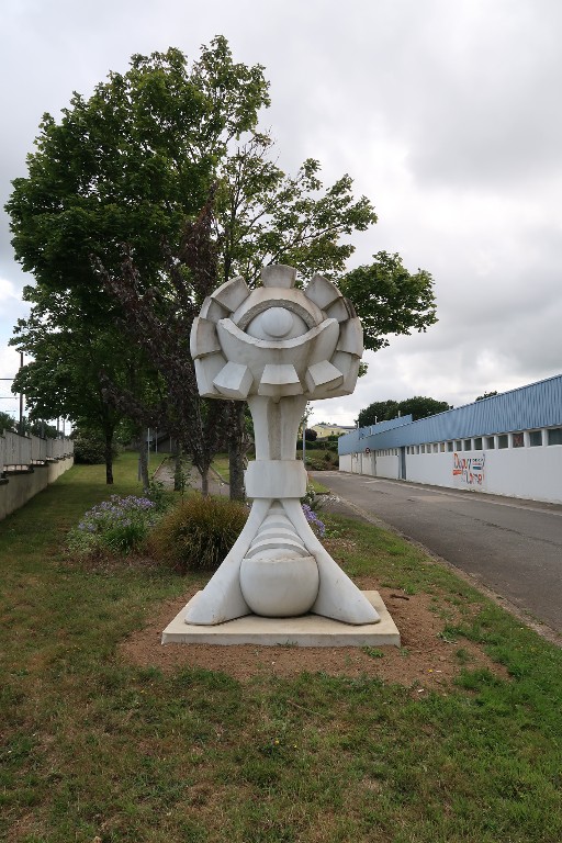 Camilo Otero, sculpture 'Finistère', vers 1975. Nouvelle implantation de la sculpture, entre rue et ateliers du lycée, juillet 2023.Immatriculation