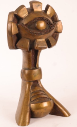 Camilo Otero, statuette en bronze de 47 cm de hauteur, intitulée 'L'œil futuriste', 1974. Elle est contemporaine de la sculpture en marbre "Finistère" et pourrait avoir servi de maquette.Immatriculation