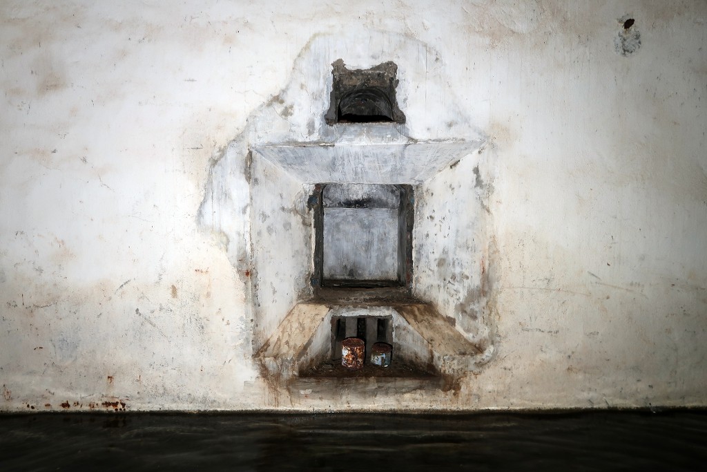 Vue du créneau à lampe. Le magasin est partiellement inondéImmatriculation