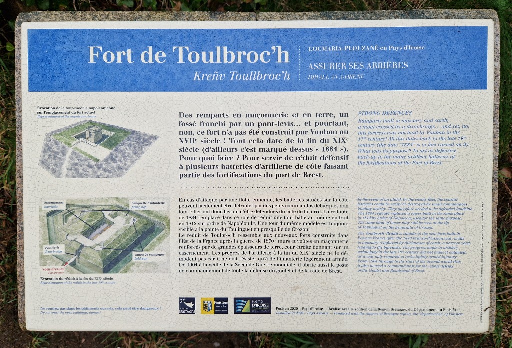 Vue de la signalétique en place : Fort de Toulbroc'h. Assurer ses arrièresImmatriculation