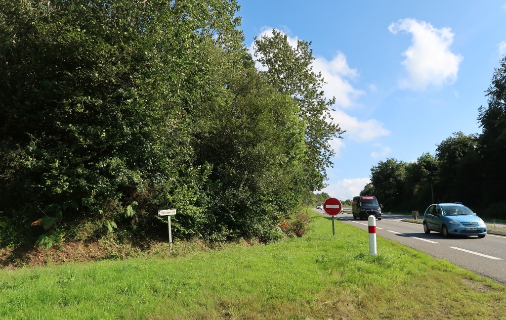 Vue de situation : route partant vers le lieu-dit Kerconstant. A gauche sous la végétation, se trouve l'emplacement du bunkerImmatriculation