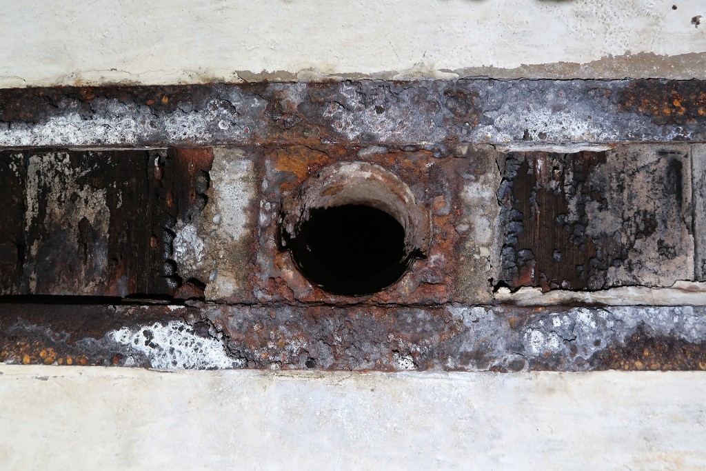 Vue intérieure : détail du plafond de la salle de garde ouest, puits pour un périscope ?Immatriculation