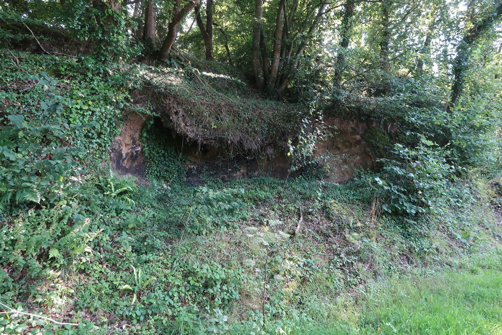 Vue de l'emplacement du réseau de tranchées et des postes d'observation et de tir situés à proximité du bunker - abri de type 502 pour deux groupes de combat. Le talus s'est effondréImmatriculation