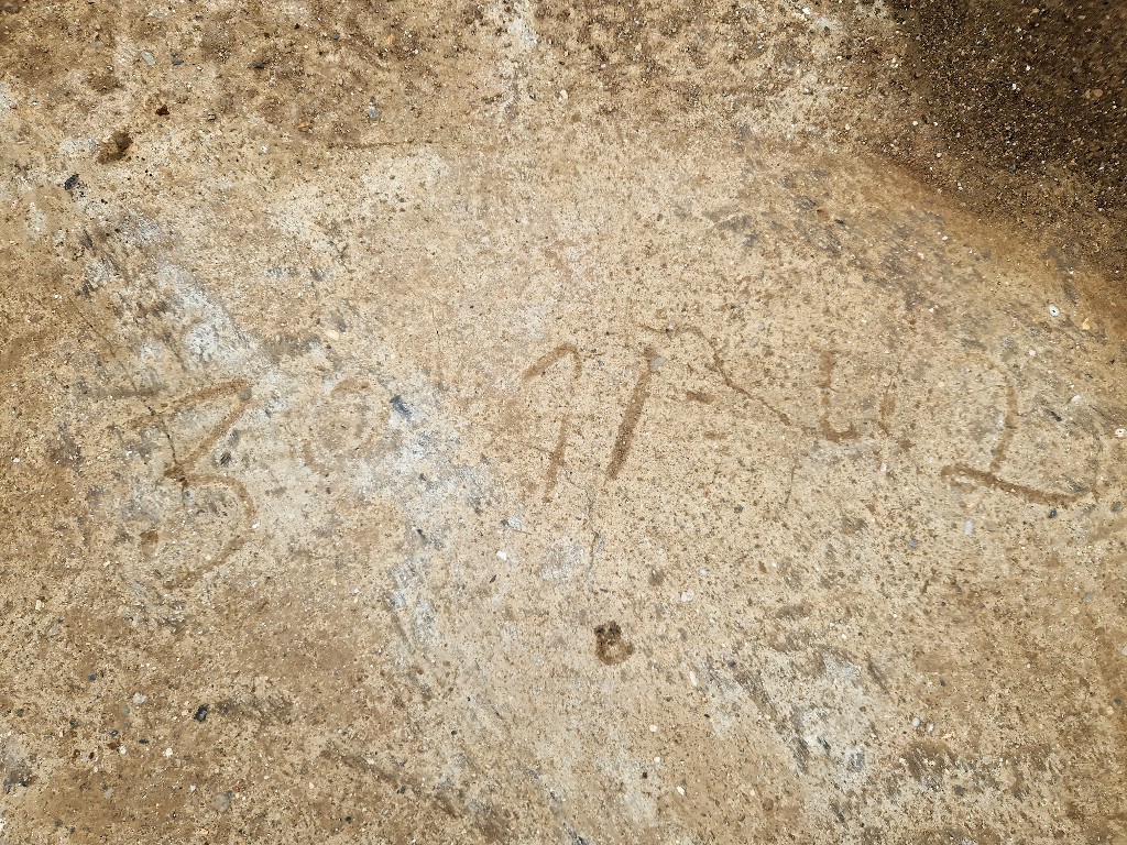 Vue de l'angle nord-est (+ 86,07 au-dessus du niveau de la mer). On peut lire 30/11/42 sur la dalle de couvertureImmatriculation