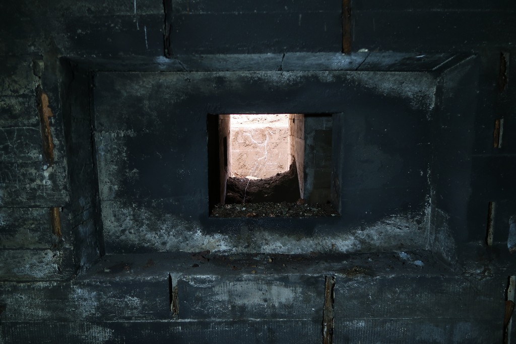 Vue du couloir d'accès nord depuis le créneau de la salle de garde. Le créneau blindé ne semble pas avoir été montéImmatriculation