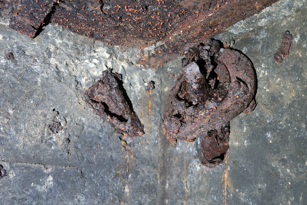 Vue de la petite pièce dédiée à l'usage du périscope : bouche de surpression à clapet à contrepoidsImmatriculation