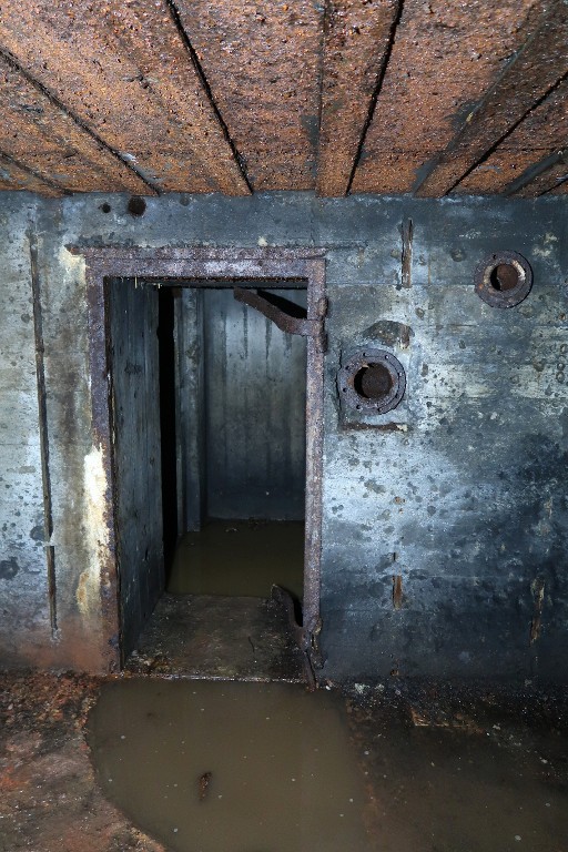 Vue de la salle de garde sud : porte d'accès. A droite, emplacement du ventilateurImmatriculation