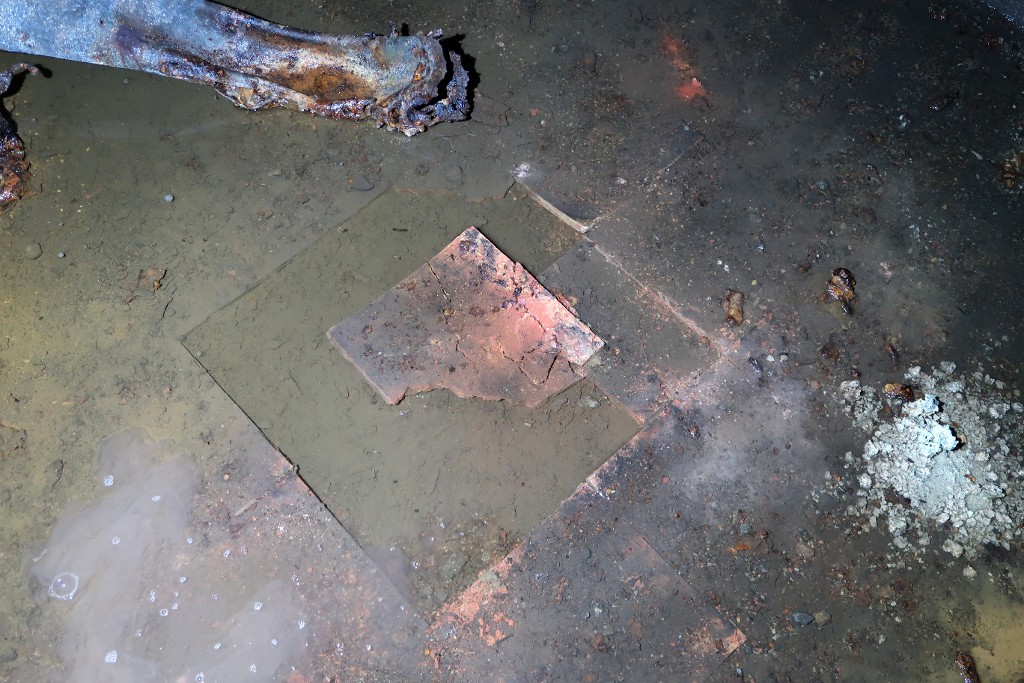 Vue de la salle de garde sud : détail du sol en carreau de terre cuiteImmatriculation