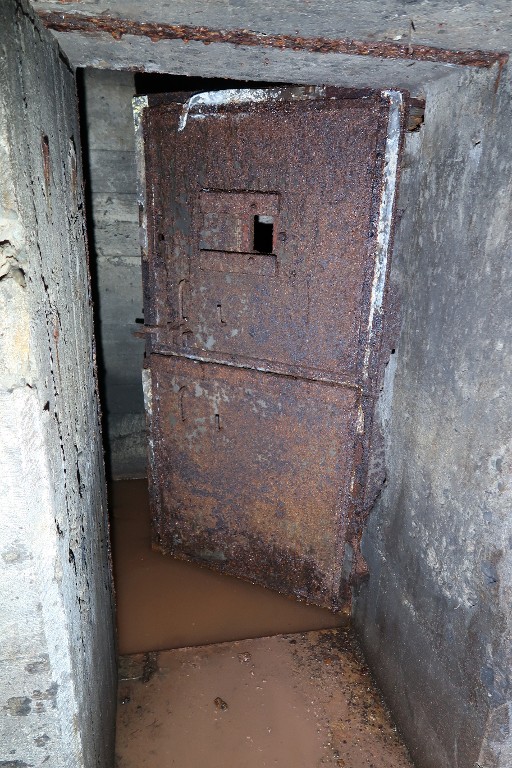 Vue de l'accès à la petite salle située au nord-est : une porte blindée à deux vantaux lisole des salles de gardeImmatriculation
