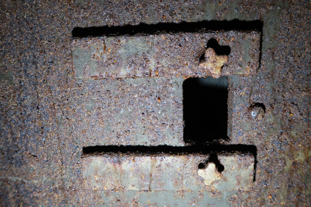 Vue de la petite salle située au nord-est : détail du judas de la porte blindéeImmatriculation