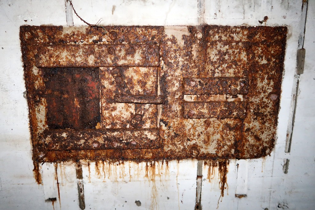 Vue intérieure : salle de garde nord, créneau blindé de défenseImmatriculation