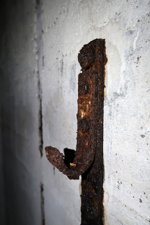 Vue de l'un des crochets muraux pour la fixation des couchettes tubulairesImmatriculation