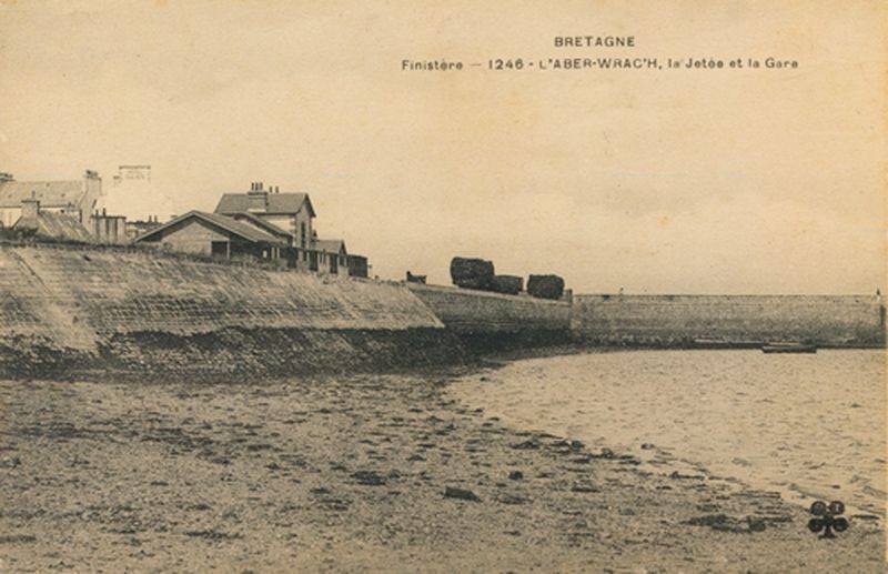 Carte postale, Port de l'Aber Wrac'h, la jetée et la gare ed. Limoges-presses-papier.Immatriculation