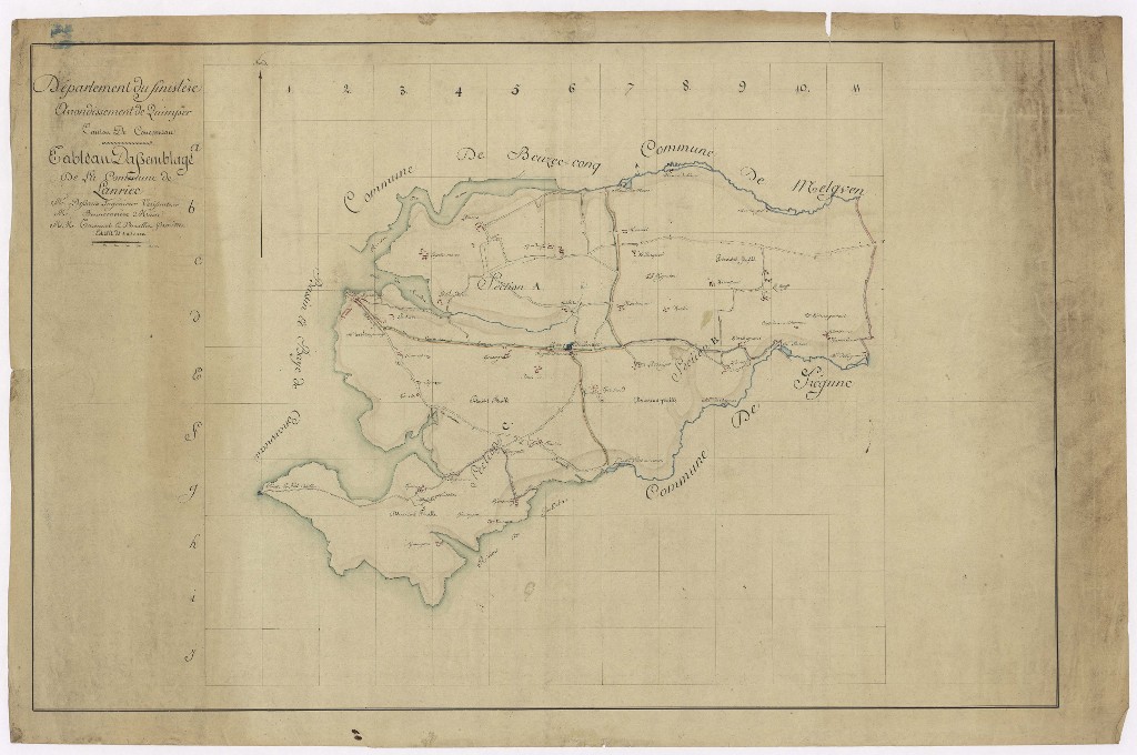 Archives départementales du Finistère, Cadastre de Lanriec, tableau d'assemblage, 1845