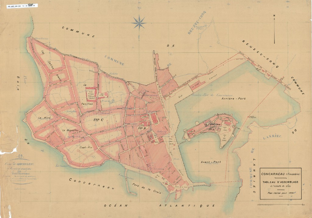 Archives départementales du Finistère, Port de Concarneau : tableau d'assemblage du cadastre, révisé en 1939