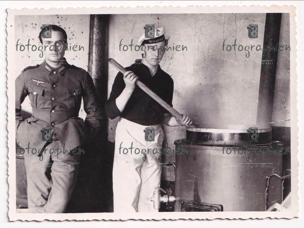 Photographie de la Marine-Flak 805 au fort du Corbeau à Plougastel, mars-avril 1941 (collection particulière) : marin de la Kriegsmarine au travail. Les deux soldats posent pour le photographeImmatriculation