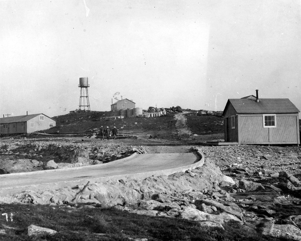 Vue de l'extrémité sud de l'île avec sa cale (collection : Naval History and Heritage Command, NH 113714). Dominant l'île, le château d'eauImmatriculation