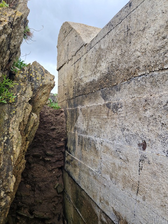 Vue de détail. L'îlot a été dérocté pour implanter le bunker. Du côté ouest de l'îlot, l'érosion marine est forteImmatriculation