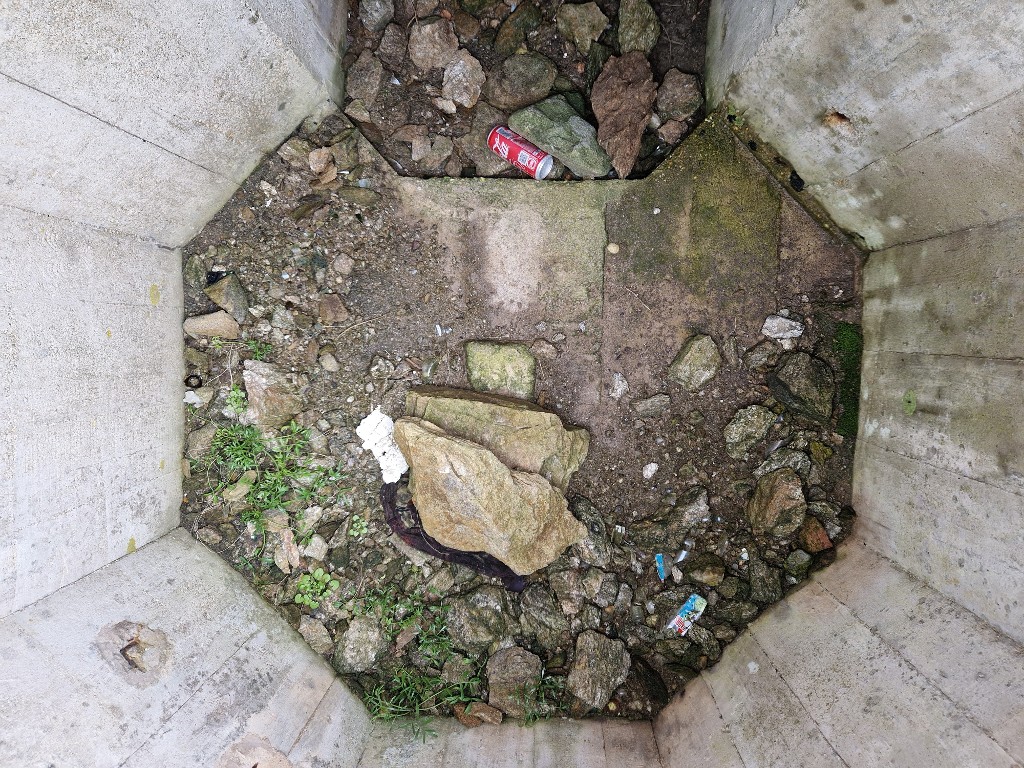 Vue intérieure : plan octogonal. En haut, escalier d'accès au poste d'observation et de tirImmatriculation