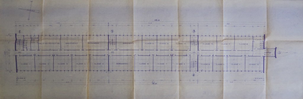 Lycée La Pérouse - Kerichen de Brest : Non coté. . Tourry [G.] et Perron [H.], Plan du rez-de-chaussée, 1960.