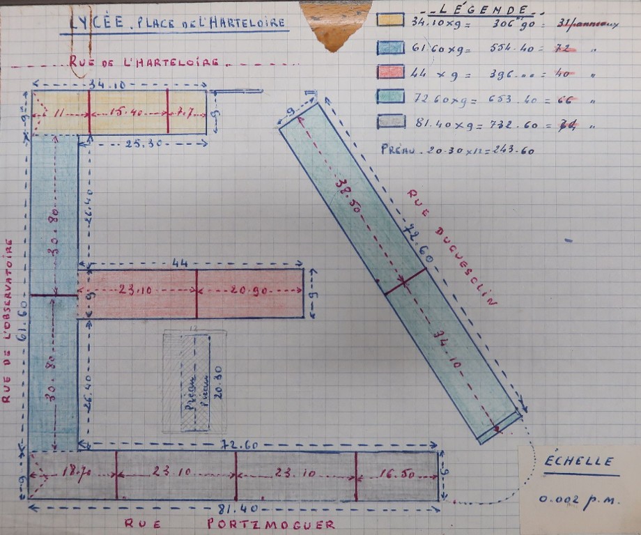 Plan du lycée en baraques.Sans nom ni date (vers 1945).Immatriculation