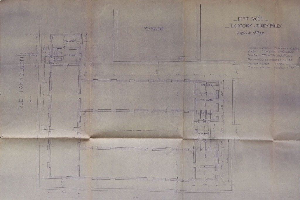 Plan des dortoirs de jeunes filles du 'Petit Lycée'. Sans nom ni date.Immatriculation