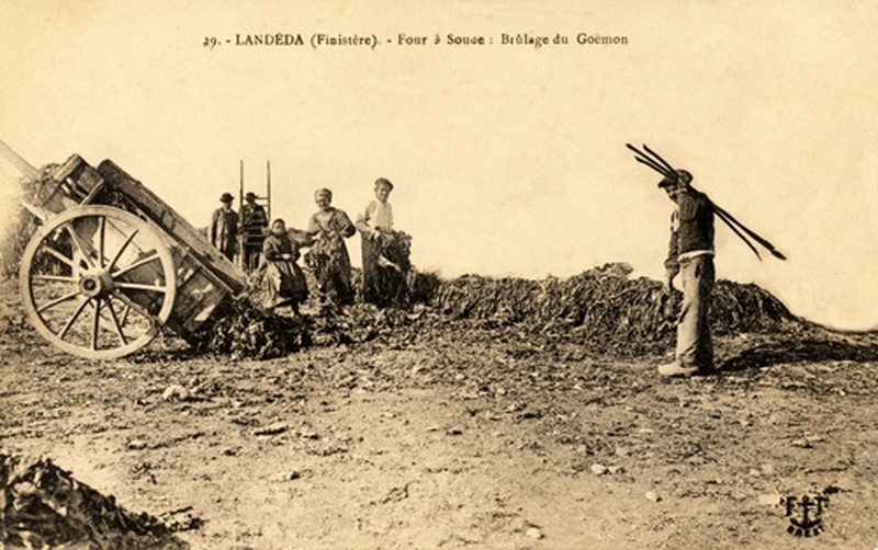 Carte postale : four à soude, brûlage du goémon sur la grève, Ed. F.T.Immatriculation