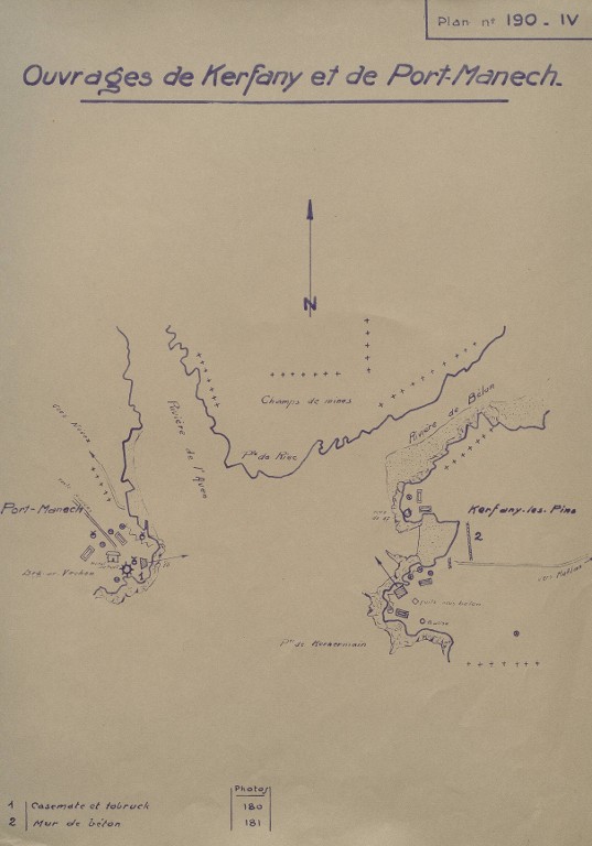 Plan des fortifications de l'embouchure de L'Aven et de la rivière de Bélon, extrait du rapport Pinczon du Sel sur les installations du Mur de l'Atlantique, 1946-1949Immatriculation