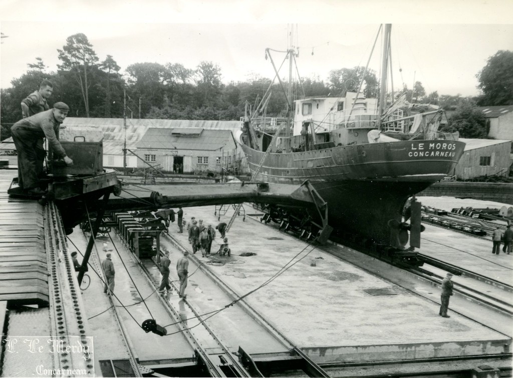 Photographie du Studio Le Merdy pour le compte de la société des entreprises Limousin, Les travaux du slipway de Concarneau. (document non coté)