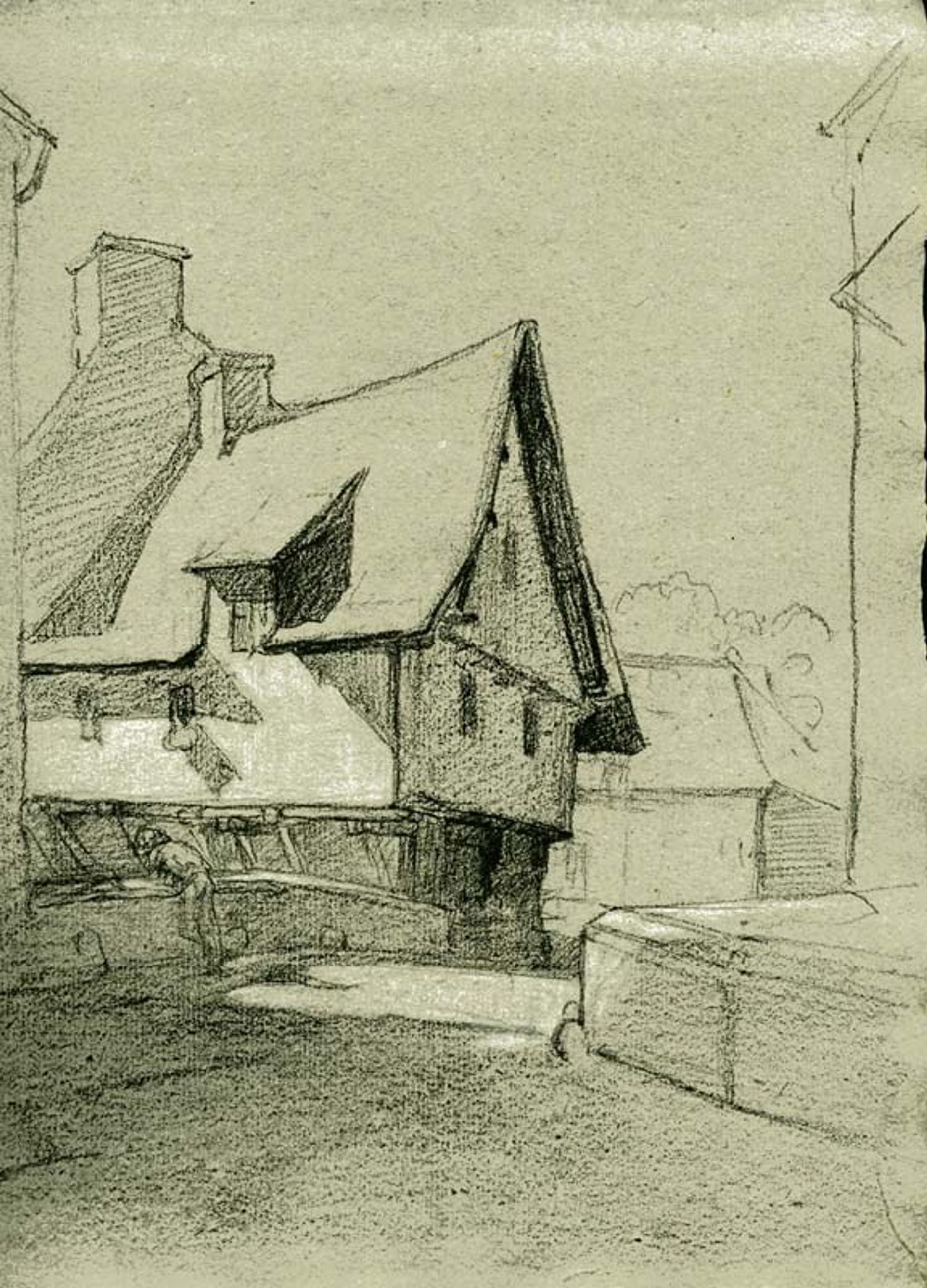 Le lavoir à Quimperlé, dessin de Jean-Baptiste Trayer (1824-1909). Ville de Quimperlé. 2001-6-11