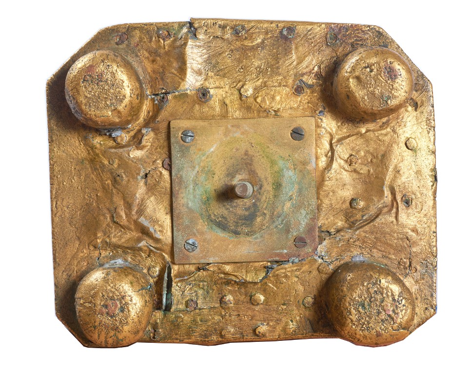 Vue de détail : clous fichés dans les plaques de métal et oxydation du matériauImmatriculation