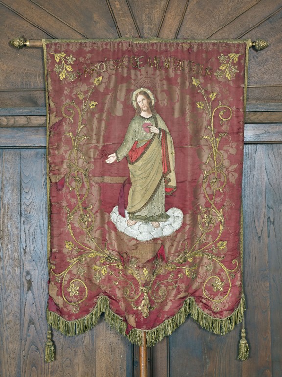 Bannière de procession : Notre-Dame du Roc / Christ, église Notre-Dame-du-Roc (Montautour),
