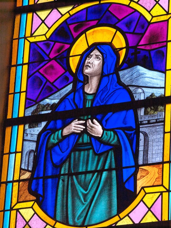Verrières (6) (verrières à personnages) (baies 9 à 14), prieuré de bénédictins, église paroissiale Notre-Dame-du-Roc (Montautour),