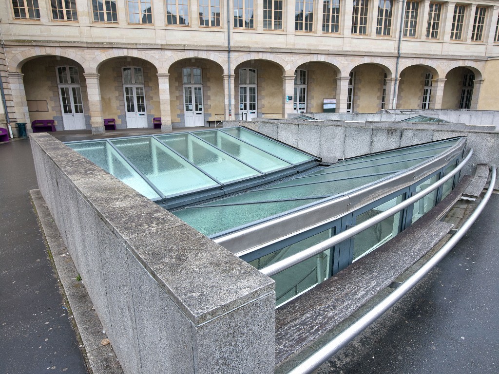 Une des deux verrières du restaurant scolaire. J. Y. Gautier, architecte.Immatriculation