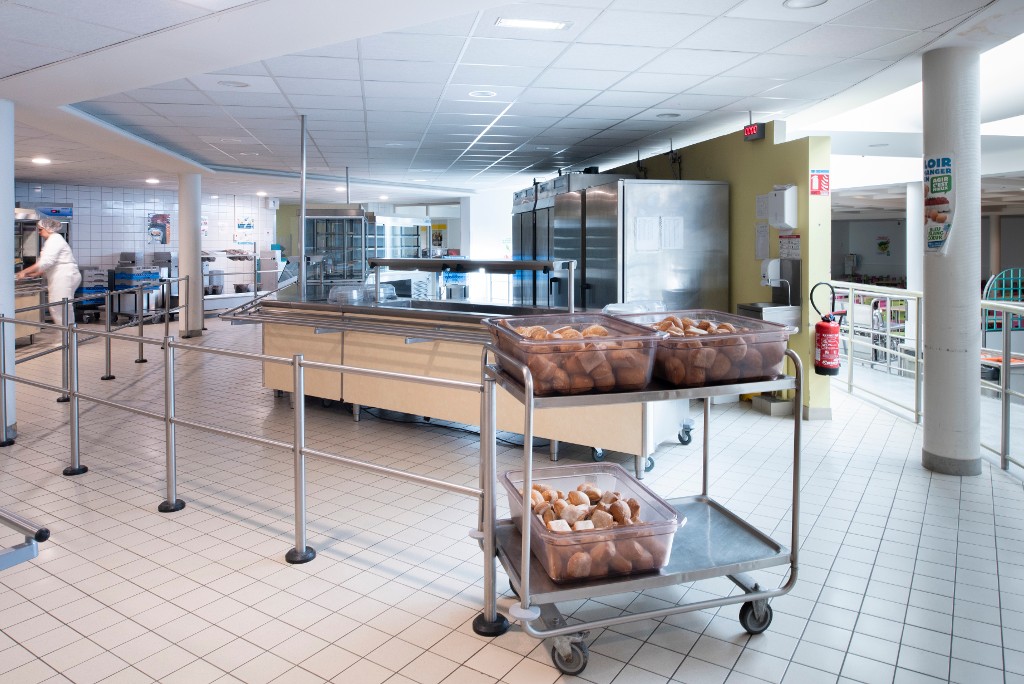 Vue intérieure du restaurant scolaire. J. Y. Gautier, architecte.Immatriculation