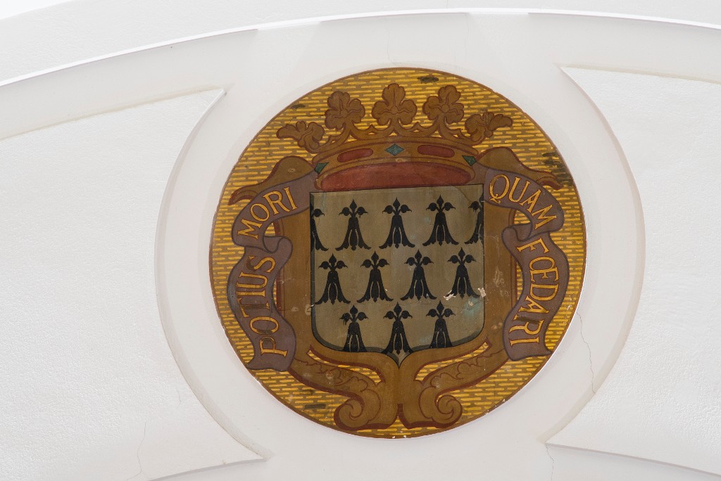 Décor peint à l'opposé du choeur de la chapelle 'Potius mori quam foedari' ( https://www.tablettes-rennaises.fr/app/photopro.sk/rennes/detail?docid=235189 )Immatriculation