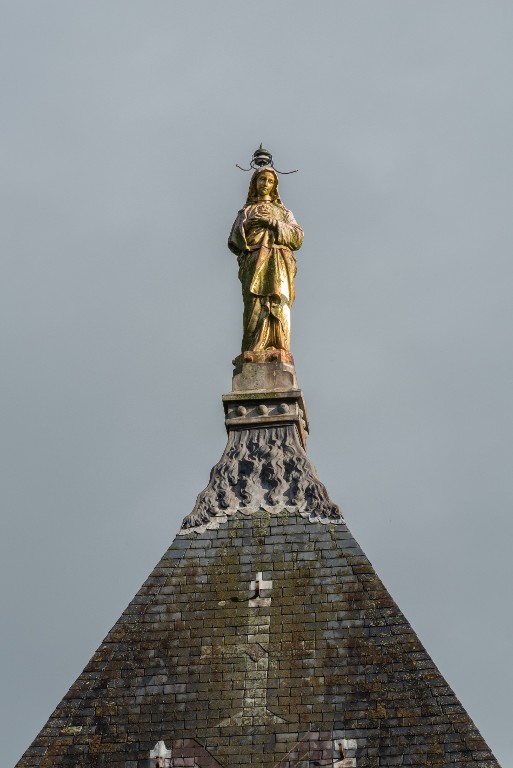 Statue de Vierge dorée en haut de la chapelle de Notre-Dame-de-la-Peinière, faceImmatriculation