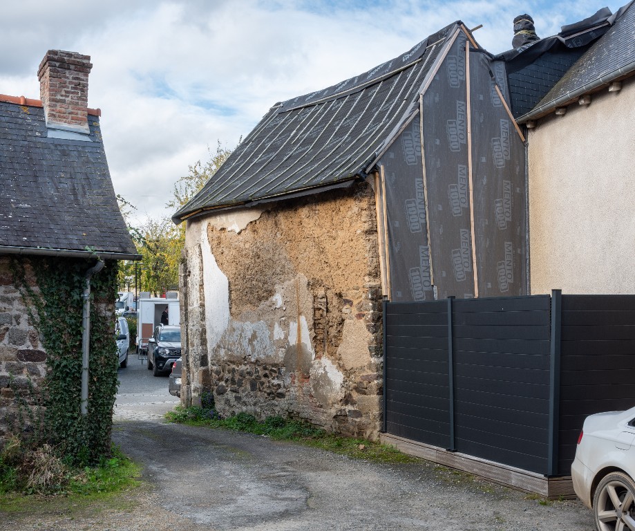 Extension en pierres et terre accolée au bâtiment du 16e siècle.Immatriculation