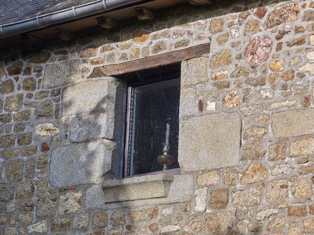 Façade sud. Fenêtre de la chambre, à appui saillant et mouluréImmatriculation