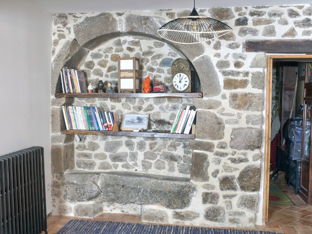 Salle ouest. Mur de refend. Vaisselier mural et lave-mainsImmatriculation