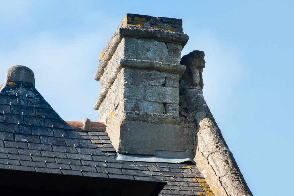 Logis haut, fin 15e - début 16e siècle. Faîte du pignon découvert et souche de cheminéeImmatriculation